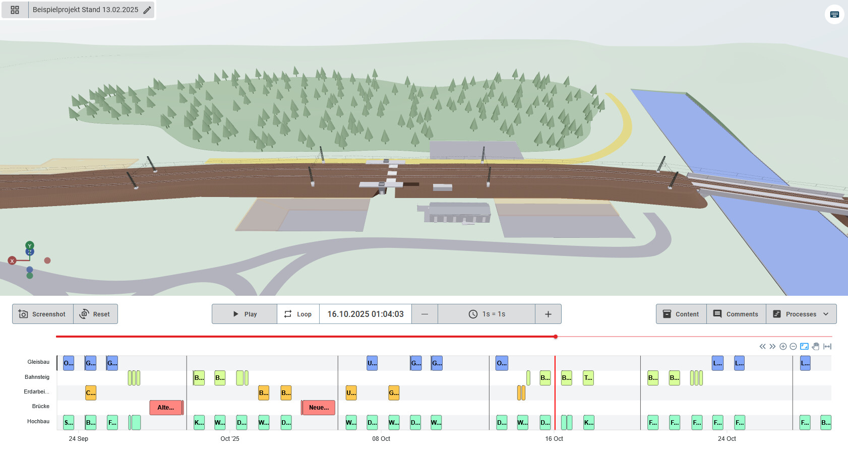 Der dProB Viewer bietet zahlreiche Funktionen: von einer browseroptimierten 3D-Ansicht und einer einfachen Timeline-Darstellung bis hin zu einer Kommentarfunktion.