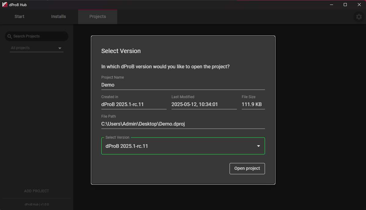 Mit Version 2025.1 veröffentlichen wir den dProB Hub – euer zentrales Werkzeug zum Verwalten aller installierten dProB-Versionen und Projekte. Im Hub könnt ihr: